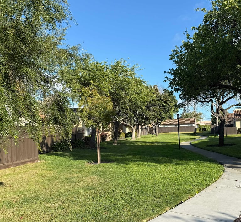 Our community of 91 single‑level homes offers a quiet, well‑maintained residential environment supported by a comprehensive range of shared amenities. The landscaped common areas include walking paths, garden spaces, and a variety of fruit trees that enhance the neighborhood’s natural character. As a sustainability‑focused association, we utilize recycled water for all irrigation needs and operate a large solar energy system that substantially reduces the community’s overall utility demand.
