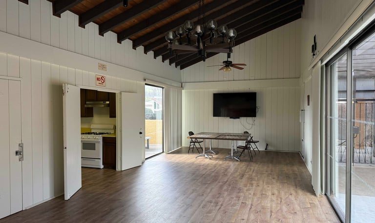 This room is where we hold our monthly board meetings, and it’s also available for residents to reserve when you need space for a gathering or event. It includes a full kitchen with a stove, refrigerator, and microwave, making it convenient for parties and community activities